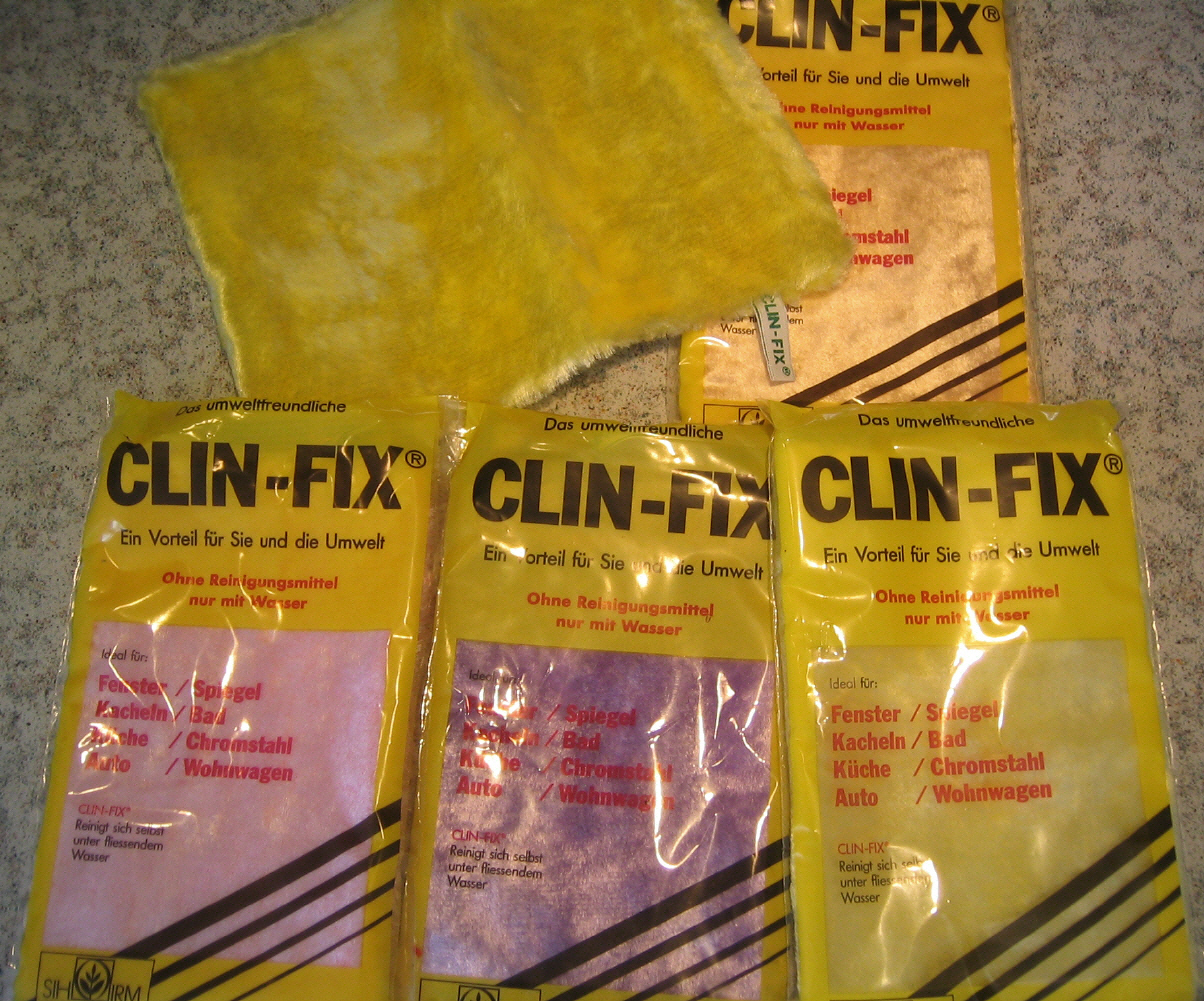 Clin-Fix nur unter fliessendes Wasser halten oder in einem Eimer mit Wasser hin und her schwenken, so öffnen sich die Zellwollfasern wieder und der Schmutz ,Rus, Fett,Staub wird einfach mit dem Wasser ohne Rückstände weggespült (nicht Reiben). Das Clin-fix ist wieder sauber und für den nächsten Einsatz bereit.